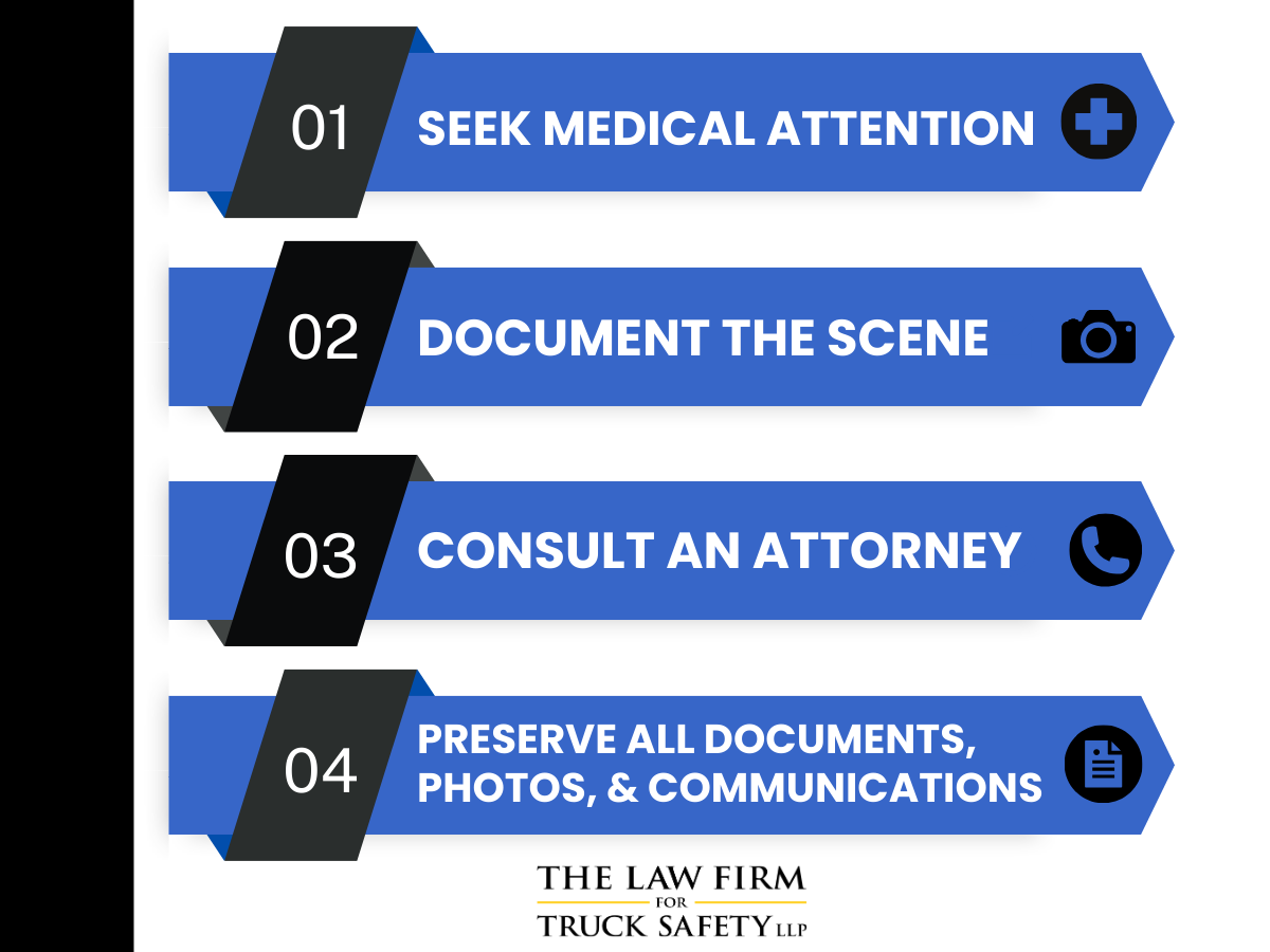 - Seek Medical Attention: Your physical health should be your top priority. If you have been injured in a truck crash, seek immediate medical care for your injuries.